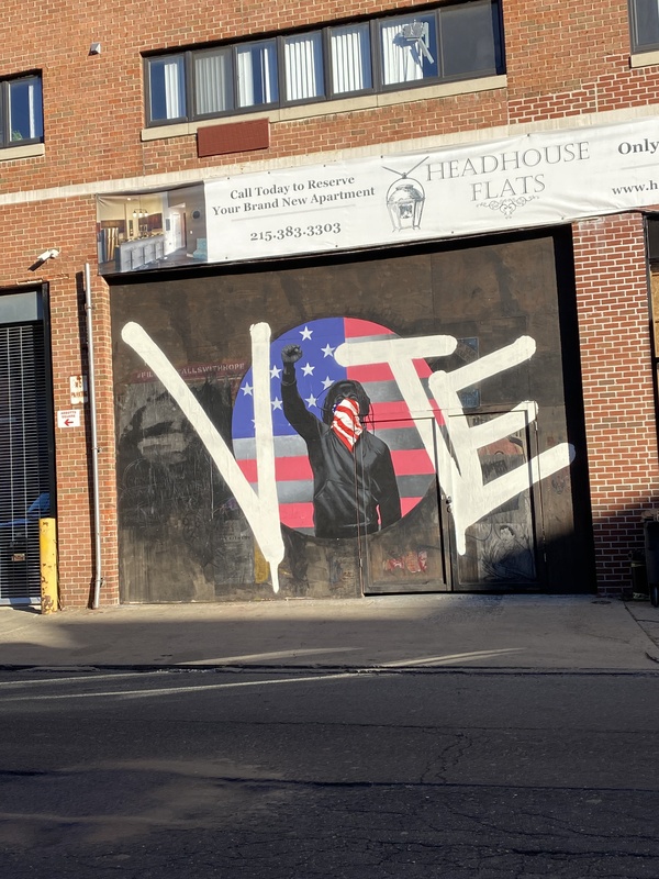 With the virtue of our country’s future president dependent on Pennsylvania the infamous swing state, street art like this is more than typical on the walls throughout Philly. It is powerful. I cannot stress enough how many times my Mom signed me up with election campaigns, poll ballot services, and volunteers from the State House. I believe we will look back on this election in the midst of a global pandemic and be able to reflect on it like no other. From outbursts of protests, riots, and looting’s, to the BLM movement, to lockdowns, all of these factors heavily affected Philadelphia, essentially influencing the outcome of the 2020 election. I believe through political murals like this reassure our 1st amendment during times like these. Given all the things the pandemic has abruptly stripped us of, it has provided us with the beauty of proactiveness and opportunity in political art.