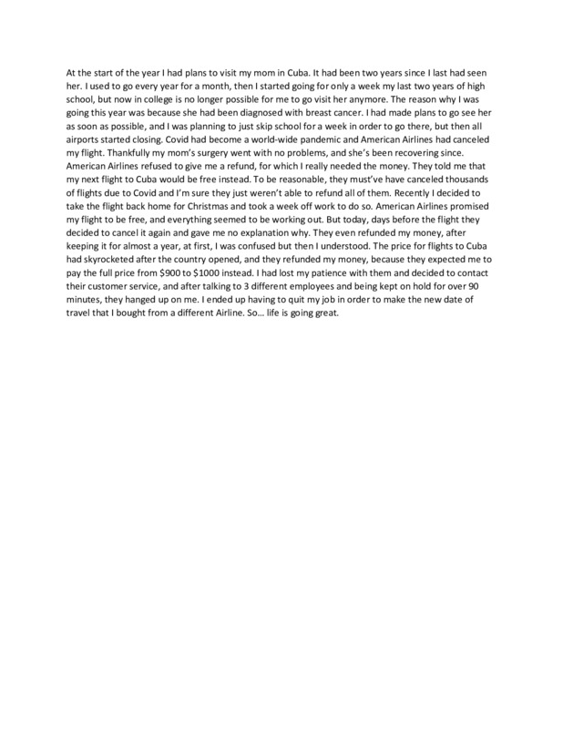 In late August of 2020, I traveled from Fort Myers, Florida, to New York City. The pandemic affected the economy and travel extensively. For everyone's safety and to prevent damage to the economy, travel was allowed but restricted. As a result, prices for flights dropped, and my brother and I took advantage to visit our father, whom we had not seen in over a year. The airport seemed empty; however, when we boarded, the plane was full of people. We received care packages before boarding that contained alcohol wipes and hand sanitizer. Luckily for us, when we arrived in New York City, restrictions for COVID-19 in the city began to die down. Business' began opening, but most of the people who left their homes only went to work. Aside from a few individuals, the streets seemed dead. The streets pre-pandemic was full of life and culture. COVID –19 appeared to have stolen all that made the city vibrant.