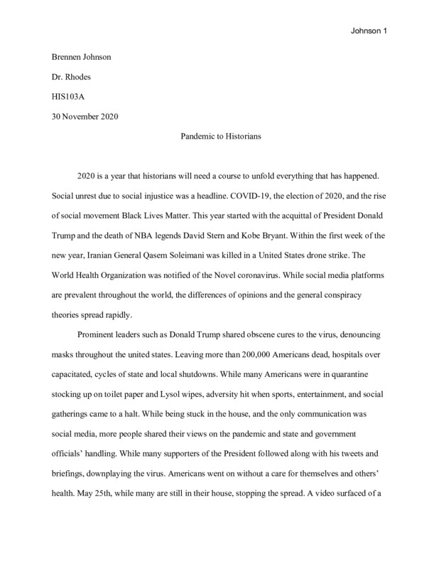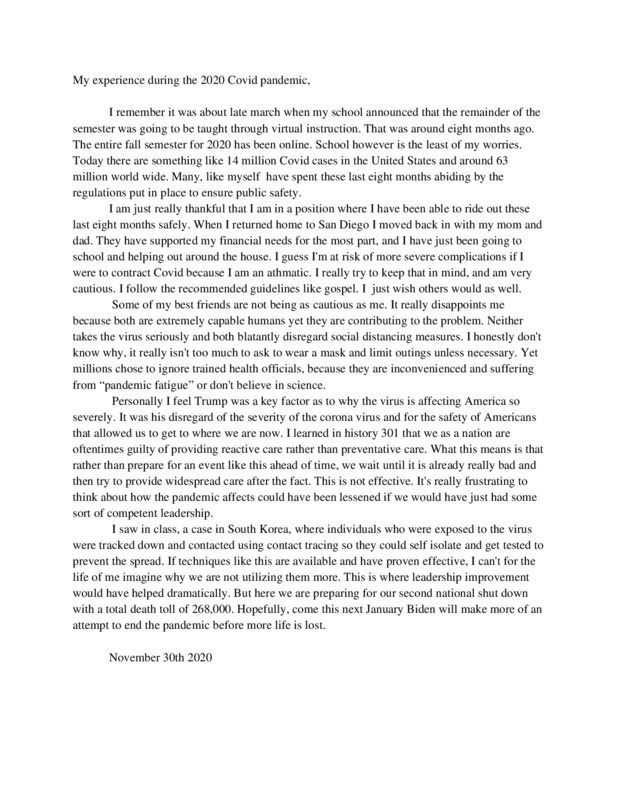 I wanted to submit my experiences with the pandemic so that historians in the future can get a complete image of the pandemic.
