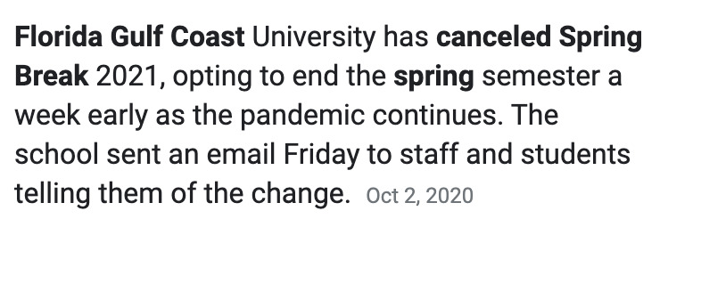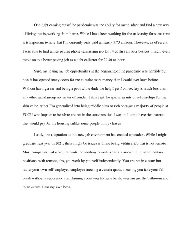 With the pandemic going on school has been quite different and this is more of a general outlook of how that is effecting me personally, because I can't speak for everyone else. When COVID really first started hitting us in March, I packed up all my things almost out of no where because my school (FGCU) suggested that we all go home for the semester and changed all of our classes to online meetings. When it first happened I suppose that it wasn't a huge hit to my education because the semester was already pretty much over and we only had a month or so left. However, when summer came and I had to do two more challenging classes over six weeks I started to realize how much I actually appreciated going to classes in person. Especially with Physics, which was very difficult to learn and comprehend in six weeks all while being taught online. Even more challenging was the virtual labs which in of itself is ironic. Nonetheless I was able to pass physics (barely), and now fast forward to present time we're in the Fall semester and not too much as changed. I understand what we are doing, but it is honestly quite annoying when you're trying to pass all of your classes, especially being an engineering major like me. For example, just now as I'm writing this I'm supposed to be in a class, but for some reason I can't connect to the zoom meeting and neither can anyone else. Thankfully my professor records all of our meetings so I can watch it later but regardless it is pain because finals are this week and I'm more worried about my calculus and engineering classes. I really find it more challenging to pay attention to a class when it's online compared to when I'm actually there in person, maybe that's just me but I couldn't imagine I am the only one who agrees with that.