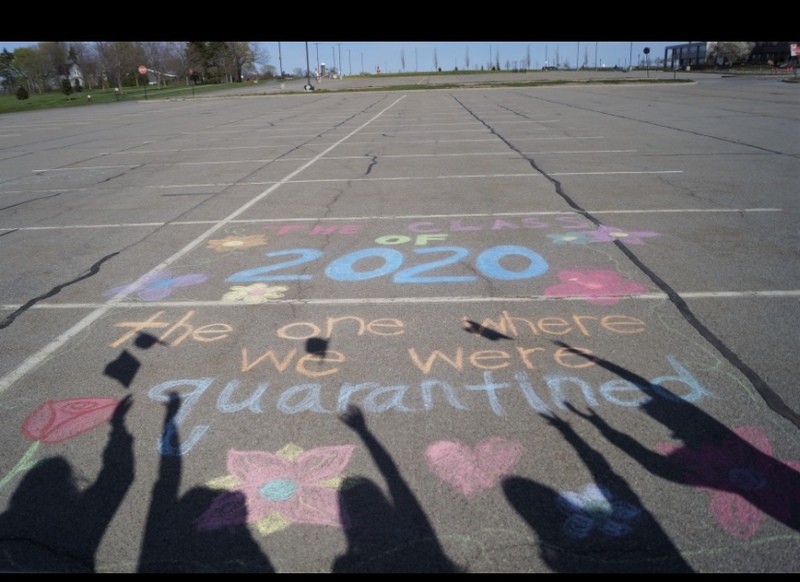 This is a chalk drawing that my friends and I made when we learned we would not being going back to school. This was very difficult because of the fact we were seniors had didn't get all the special things our last year . We wanted to make our mark on the school in a way that would show the school how much we loved coming every day. We went to the school and made this in the parking spots we usually parked in every day. This ended up going on the local news and the school website.