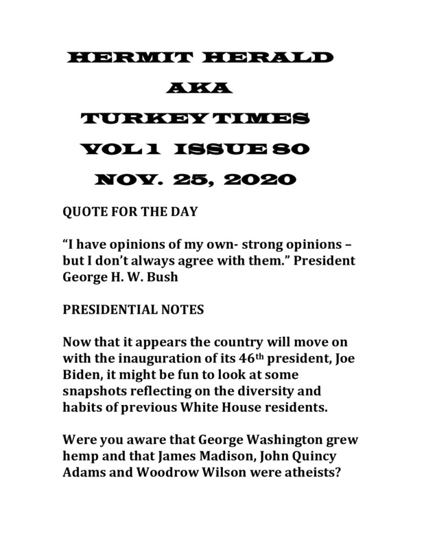 “This email is in regard to my grandfather's Covid diagnosis: My grandfather's name is David Nelson M. II. He was born June 1, 1936, so that means he's 84. It also means he is in the high-risk group. In January of this year [2020], he went on a cruise with a group of his friends and returned feeling ill. At first he wrote his illness off as the flu, but his "flu" lasted for months. Eventually, went to a clinic and discovered he had COVID-19, so his doctor ordered him to go to the emergency room on November 3rd. He was in the emergency room for five hours before the staff finally admitted him, spending the next seven days in the hospital. After a five-course treatment on IV, he was released and allowed to go home on November 10th.”