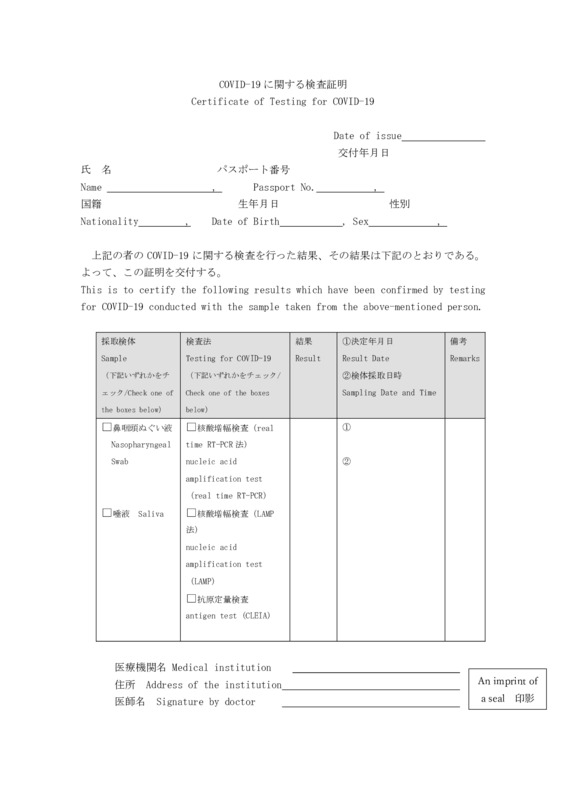 From November 1st of 2020, foreign residents who have valid residency in Japan who currently are outside finally can come into Japan just like normal citizens. Before this regulation, foreign residents such as permanent residence holders had to get this “the Letter of Confirmation of Submitting Required Documentation for Re-entry into Japan” or “Receipt for Request of Re-entry” from the closest Japanese embassy. On the other hand, Japanese citizen just need to come in with a valid negative result. This applied to me, where I could not go back because that would mean I had to go to LA’s Japanese embassy to get the form, and then go back to Japan. Now, I could go back to japan, if I have a “certificate of negative result”. However, I opened the file, and it turns out I would need a signature from a medical institution and a doctor. All students from ASU can get free test from ASU, but it is not a medical institution. This means I would have to go to other places that can give me this signature, which is not that easy for me.