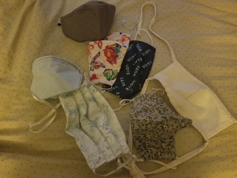 These are masks my mother and I have acquired by various means to wear during the pandemic.