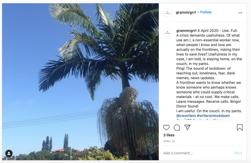 This story, "Use. Full" speaks to my feelings of uselessness as lockdown set in and the irony that, because I had the time and not much else to do - because I knew people who knew people and was armed with a smart phone and limitless wifi - I was able to be of use in a remote, emergency situation. I am a professional actor, writer and singer, for whom all performance work was brought to an abrupt halt. I have family and friends who are clinicians and who, unlike me, (still) find themselves on the frontlines of the pandemic dealing with their own pandemic-wrought stress. There was something strangely comical about doing nothing, this enforced idleness, being touted as my patriotic duty. It is especially difficult to accept that proposition when usefulness and productivity have been so ingrained and associated with 'getting your hands dirty.' My smartphone and computer, devices often derided as barriers to 'real' human connection became the conduits for the only real connection we could have other than with the loved ones we were isolating with. The 'pings' of text notifications were welcome accompaniments to days spent reading, watching movies, amusing ourselves with the latest pandemic-inspired memes.