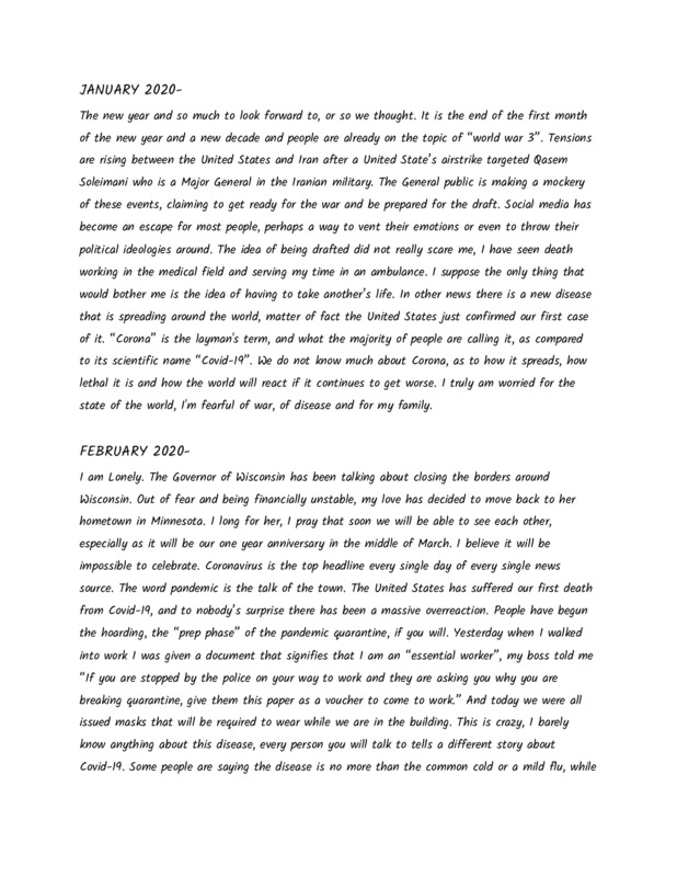 The interview is with Ashley Trayler, a senior undergraduate student majoring in Criminal Justice and Psychology. Ashley is not only a student but a mother of a two-year-old named Adrian. In the interview, Ashley discusses her life before the pandemic, which involved taking care of her son and working full time at a call center. Once the pandemic hit, Ashley was impacted by job loss, facing financial obstacles, and being a college student transitioning to virtual school. Ashley has made many sacrifices to adapt to obstacles that have come her way caused by COVID-19, but she has remained strong by taking herself and prioritizing her health to be the best mother, student, and person she can be.