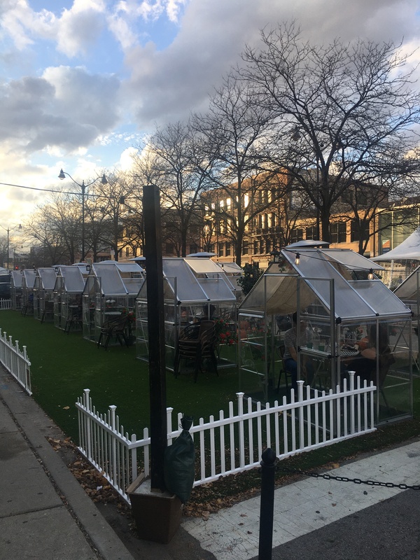 Outdoor seating at the restaurant Darling in West loop, Chicago.