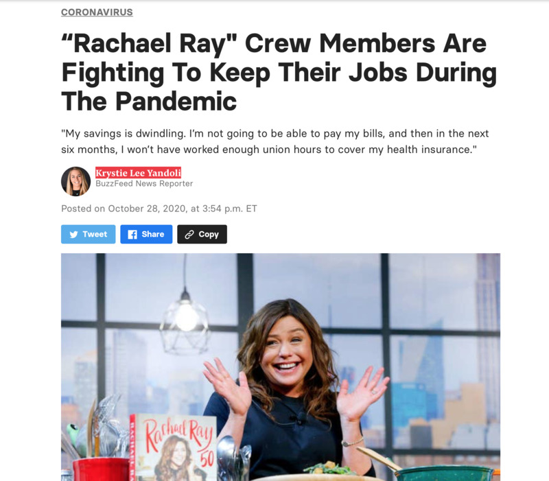 This is an article about the difficulty that crew members on shows and other entertainment industry venues are facing regarding the pandemic.