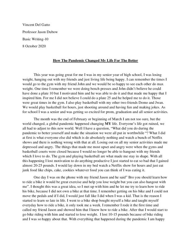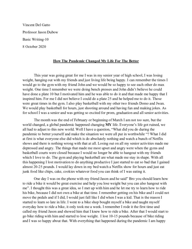 COVID-19 came as a shock to everyone. No one could have predicted the rippling effects it has had in everyone's lives. This pandemic impacts all kinds of people- young, old, single, married, rich, and poor. It is the common thread among all of us. It is what binds us together during this difficult time. This time will never be forgotten. It will be written in textbooks and taught to future generations. Many families are going through a hard time. Who knew a virus could infiltrate people’s lives like this and flip them upside down? No one saw this coming. Many families are struggling financially including mine. We weren’t prepared for this. We thought it will all blow over soon enough. Unfortunately, we were wrong. First, my school closed. Then, my job place closed. Then, my gym closed. It seemed as if the whole world was shutting down right before my eyes, slowly stripping the things I love the most. The thought of being trapped in the house, all day, every day, for who knows how long, gave me anxiety. Slowly, life began to become very boring. Waking up knowing that you’re trapped in the house. Curfews were put up in my city. It’s like we were little kids and the Government was our parents trying to protect us from the monster- COVID 19. I suddenly had so much free time on my hands and didn’t know what to do with it. I decided to pick up some new hobbies. I tried everything. From painting to reading. It was a crazy time for all of us. When we were finally allowed out, I was so happy. Happy that everything will go back to normal, happy that I could get my old life back, happy that I could leave my house again. However, it wasn’t what I expected it to be. We had to wear masks, gloves, and maintain six feet apart between people. I remember the first time I went out in months. Everyone had covered faces and only eyes of sadness and fear were able to be seen. We all looked the same, yet on the inside we were different, each of us experiencing the impacts of the pandemic in a different way. I was shocked. I couldn’t wrap my head around the fact that a virus, something that is not visible to the naked eye, has turned our lives upside down and forced us to deal with the consequences. As of now, September 2020, life is somewhat what it used to be, but it will never return back to the way we’ve known. The fact that this has become our new reality, is kind of scary. But we are not out of the clear yet, there’s still so much work to do. We have to cooperate with all the guidelines and stick together. Especially during these difficult times, together we are stronger. This is all my own interpretation of the times we live in now and how it has impacted me and changed our lives forever.