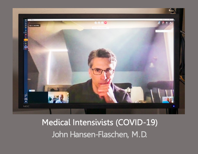 The portraits overlay a story mostly untold of the feverish “backroom” effort that distinguishes order from chaos inside hospitals suddenly at risk of being overrun. The photographs also explore the new people-and-place aesthetics of casual videoconferencing as first experienced in recent months by millions of people worldwide.