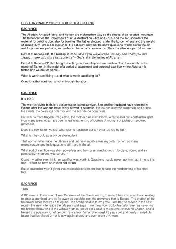 In this time of Covid when much is being sacrificed it seemed apposite to reflect on the idea of sacrifice, particularly as it is central to Genesis 22 read on Rosh Hashonah.