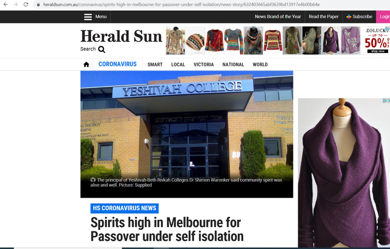 newspaper article in the Herald Sun by Brianna Travers, that explains how Jews in Melbourne would be celebrating Pesach under lockdown