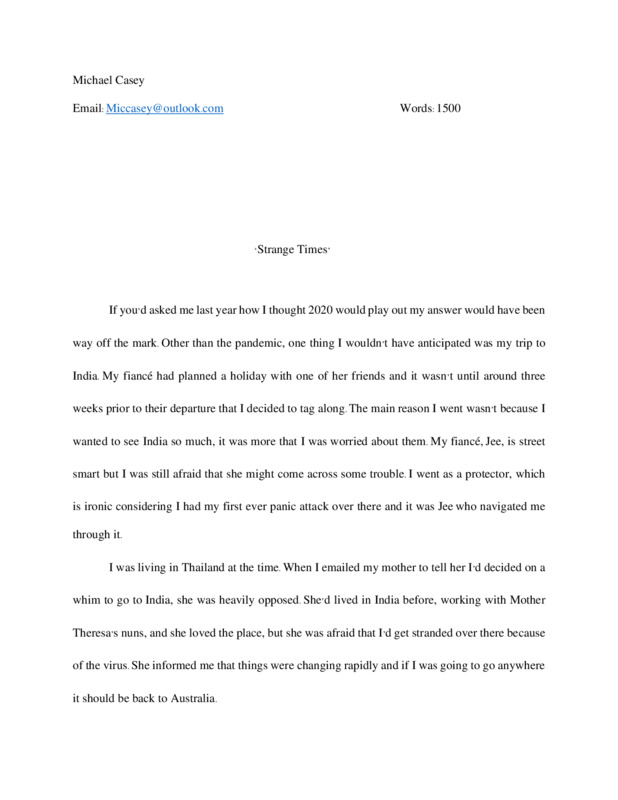 Throughout the covid-19 crisis I have been documenting my experiences. The diary focuses on my trip to India in early March, where I nearly didn’t get out in time, as well as my escape from Bangkok and the everyday life in lockdown I’ve been going through ever since. I send the entries to my fiancé via email each week. My hope is that the diary will end with our reunion, but my fear is that life will lead us along a different path.