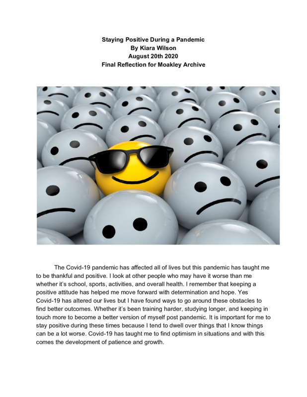 I remember when quarantine first started, I was miserable. I hated the idea of being stuck in the house. But I used quarantine as a time for me to stay positive and work on becoming a better me. With staying positive I had a better mindset throughout the day and found ways to keep me motivated. I was upset at first with a bunch of my activities being cancelled but I did find positive alternatives. With this it has definitely lifted my spirits and made me have more of a positive outlook on the cancellation of certain things and on life moving forward.