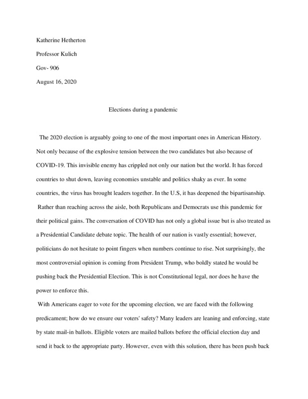 Rather than reaching across the aisle, both Republicans and Democrats use this pandemic for their political gains. The conversation of COVID has not only a global issue but is also treated as a Presidential Candidate debate topic. The health of our nation is vastly essential; however, politicians do not hesitate to point fingers when numbers continue to rise. Not surprisingly, the most controversial opinion is coming from President Trump, who boldly stated he would be pushing back the Presidential Election. This is not Constitutional legal, nor does he have the power to enforce this.