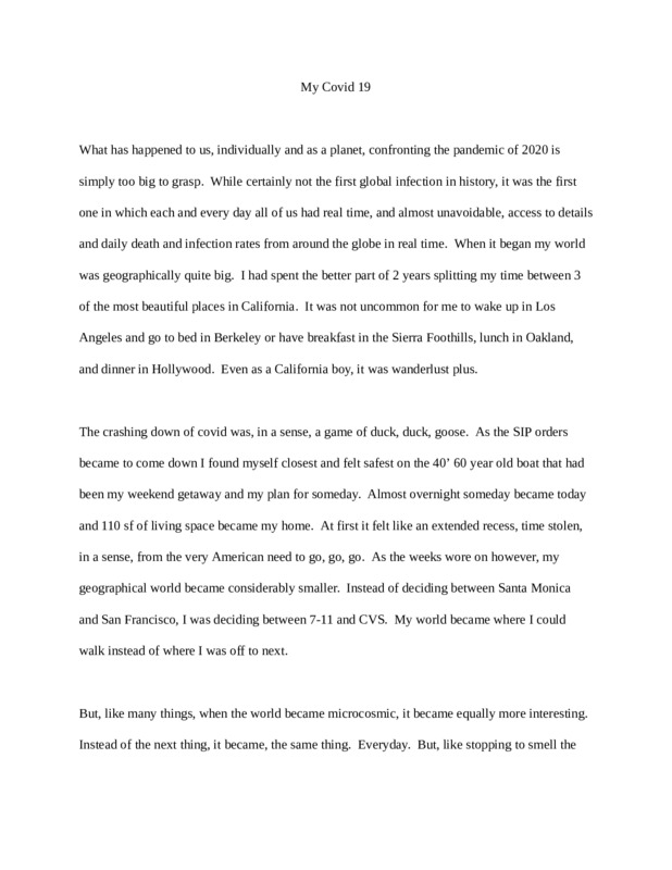 I submitted how the Corona Pandemic has helped change my life for the better.