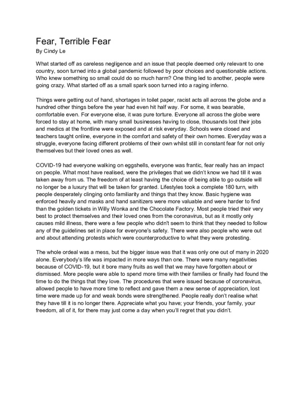 The story that I have uploaded talks about how the pandemic has impacted people and is a reflection of how I feel as a young individual amongst all of it.
