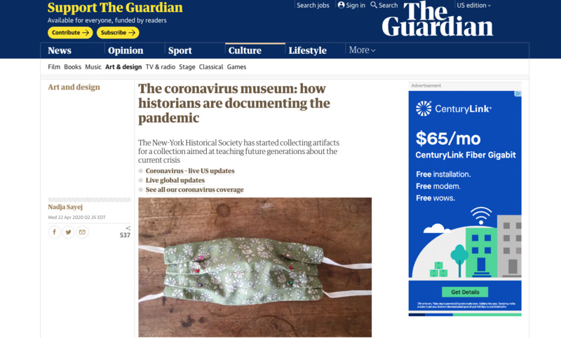 "The coronavirus museum: how historians are documenting the pandemic. The New-York Historical Society has started collecting artifacts for a collection aimed at teaching future generations about the current crisis .."