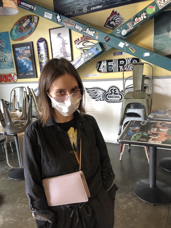 Me and my girlfriend waiting for the food with a mask.