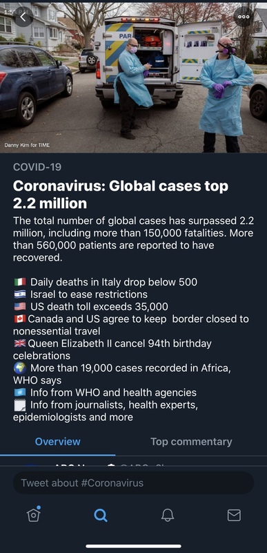 Worldwide coronavirus updates on Twitter