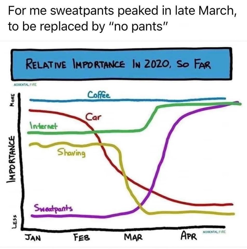 Meme showing relative increase and decline in some activities during quarantine
