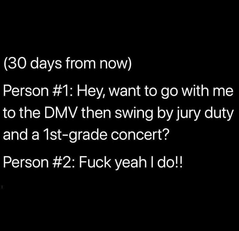 Meme with text of conversation about activities that will seem interesting after being quarantined