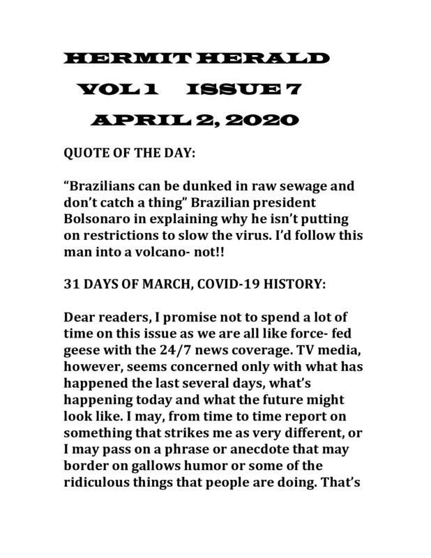 COVID 19 Journal by Kaitlin Whalen written 04/03/2020