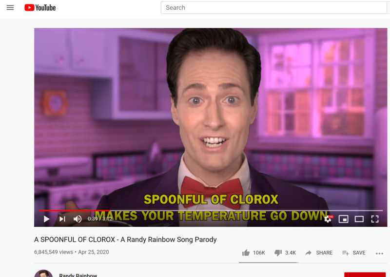 YouTube parody of "Just a Spoonful of Sugar" based on President Trump's suggestion that household disinfectants could be used to treat COVID-19.