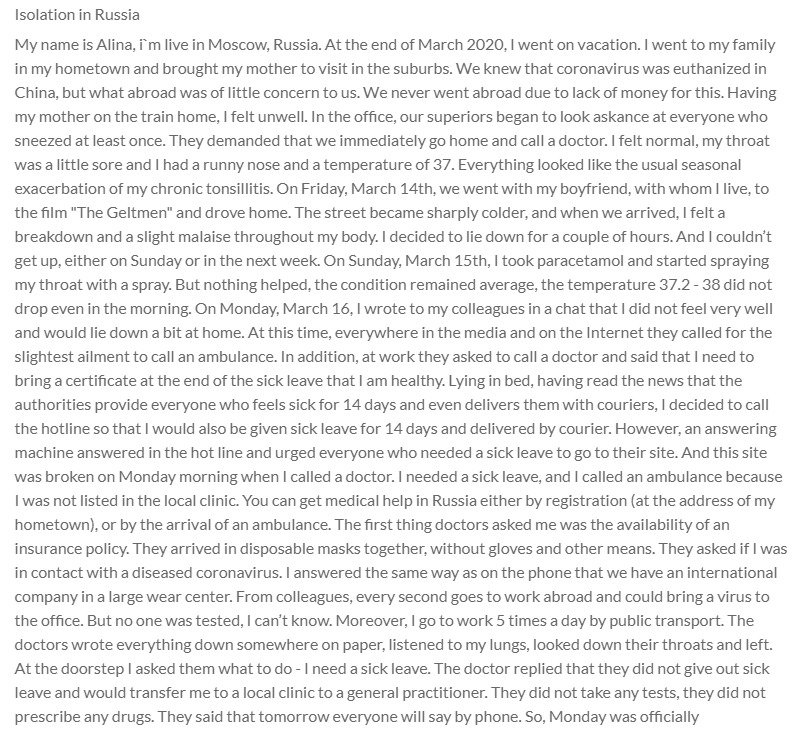 During this time I didn’t actually care about the virus. I was empty, devastated, alone, feeling miserable, feeling guilty, coz it was my fault. I was soo in love. I v never had this feelings before in my life. I felt like I was in heaven, I couldn’t believe that somebody could love me also. And because of that I fucked everything. The thing is that during the quarantine you can’t go anywhere or see much people, or meet new people for heeling yourself.