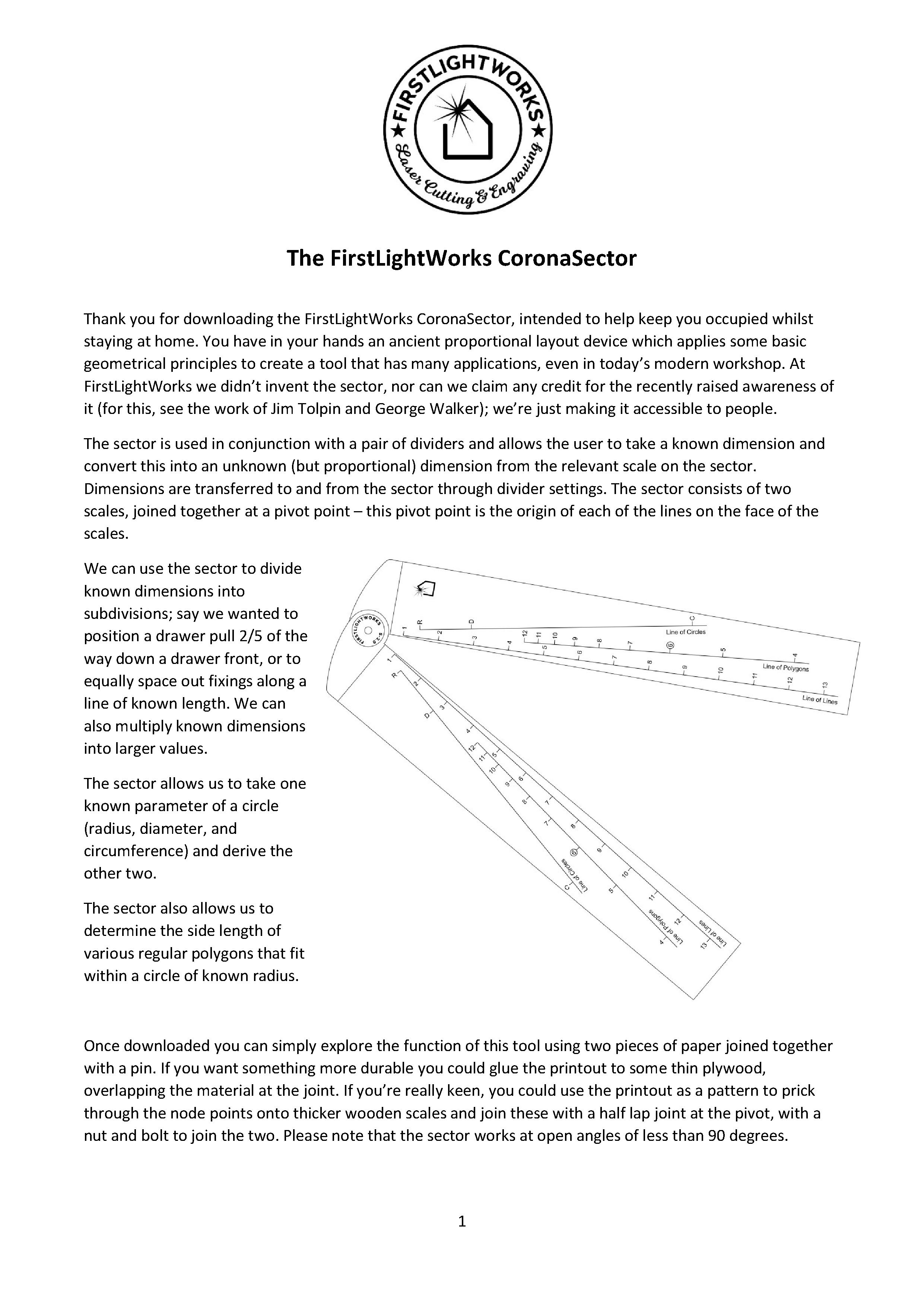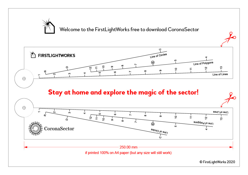 The Corona Sector is a neat device for woodworkers or artists, for making geometric layouts. It is to keep people occupied while cooped up.