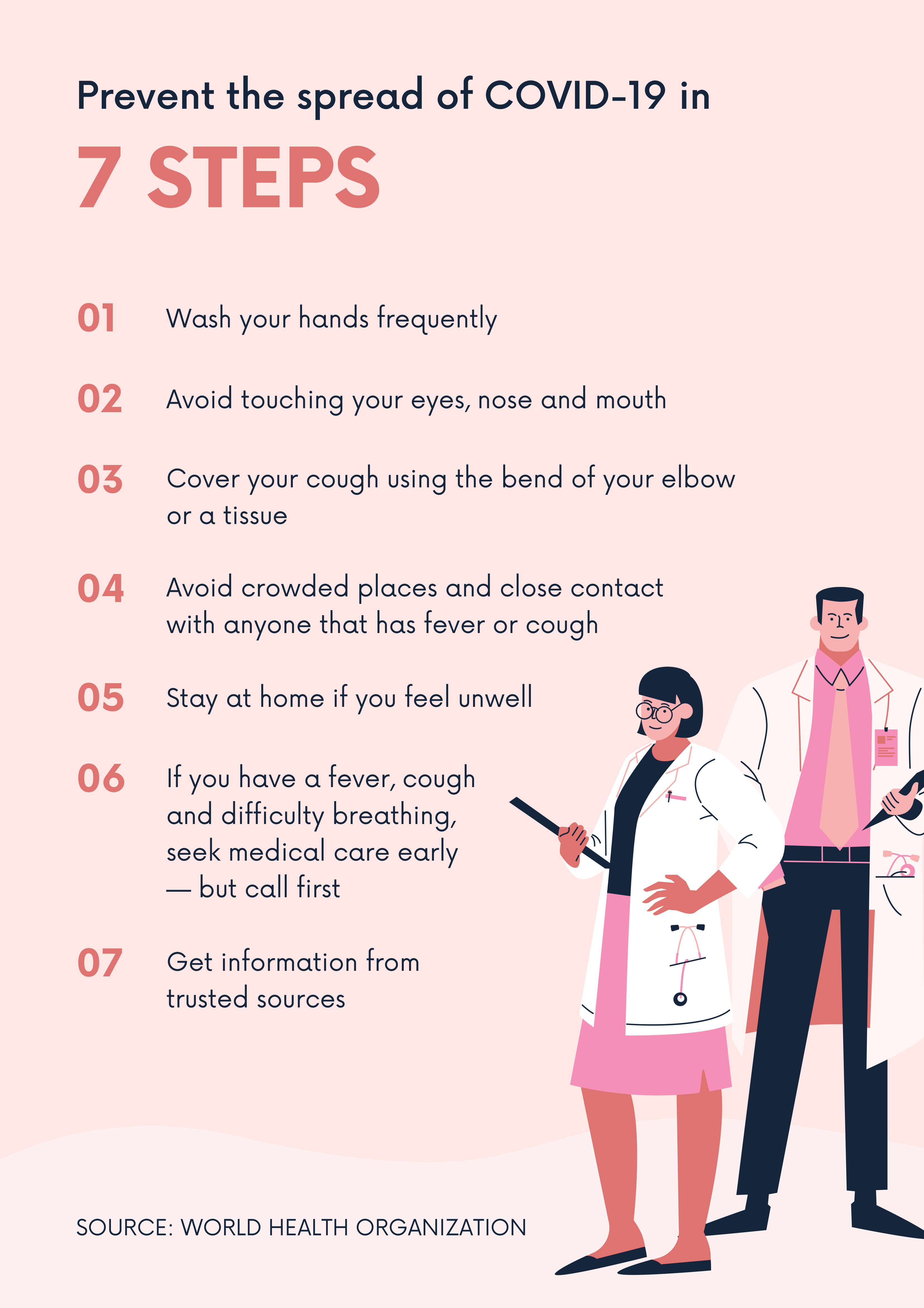 Digital poster template hosted on Canva.com, customizable design with text locked to prevent the spread of misinformation, information source: WHO