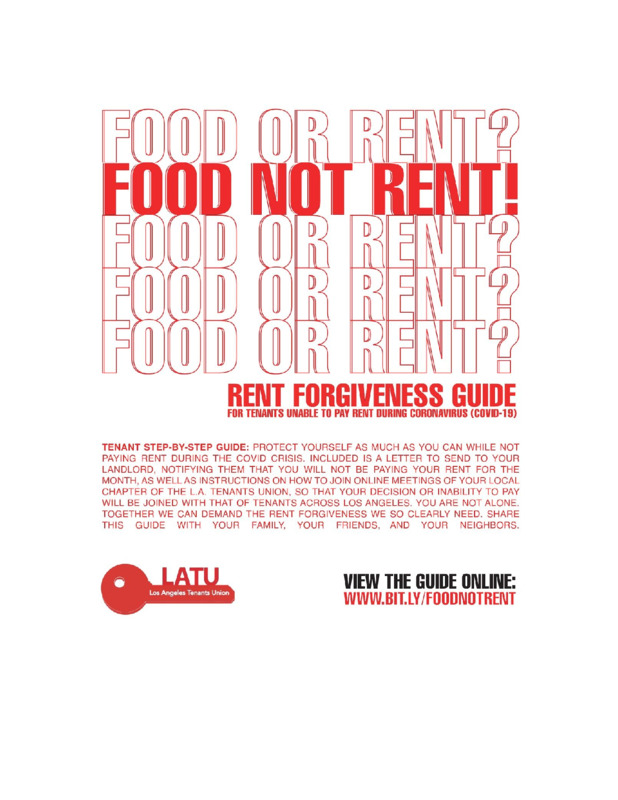 This resource is an open guide published by the Los Angeles Tenants Union that seeks to inform tenants about their rites, and encourage them to undertake a rent strike if they should have to choose between paying for rent or paying for food during the pandemic. For many people, a lack of work has made access to funds for living expenses more difficult. #HIST5241